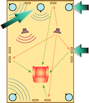 定在波やフラッターエコー(鳴き竜)が再生音を汚す最も多い要因となっています。 吸音だけでなく、適度な拡散がチェーンナップのポイント、システムの性能を、